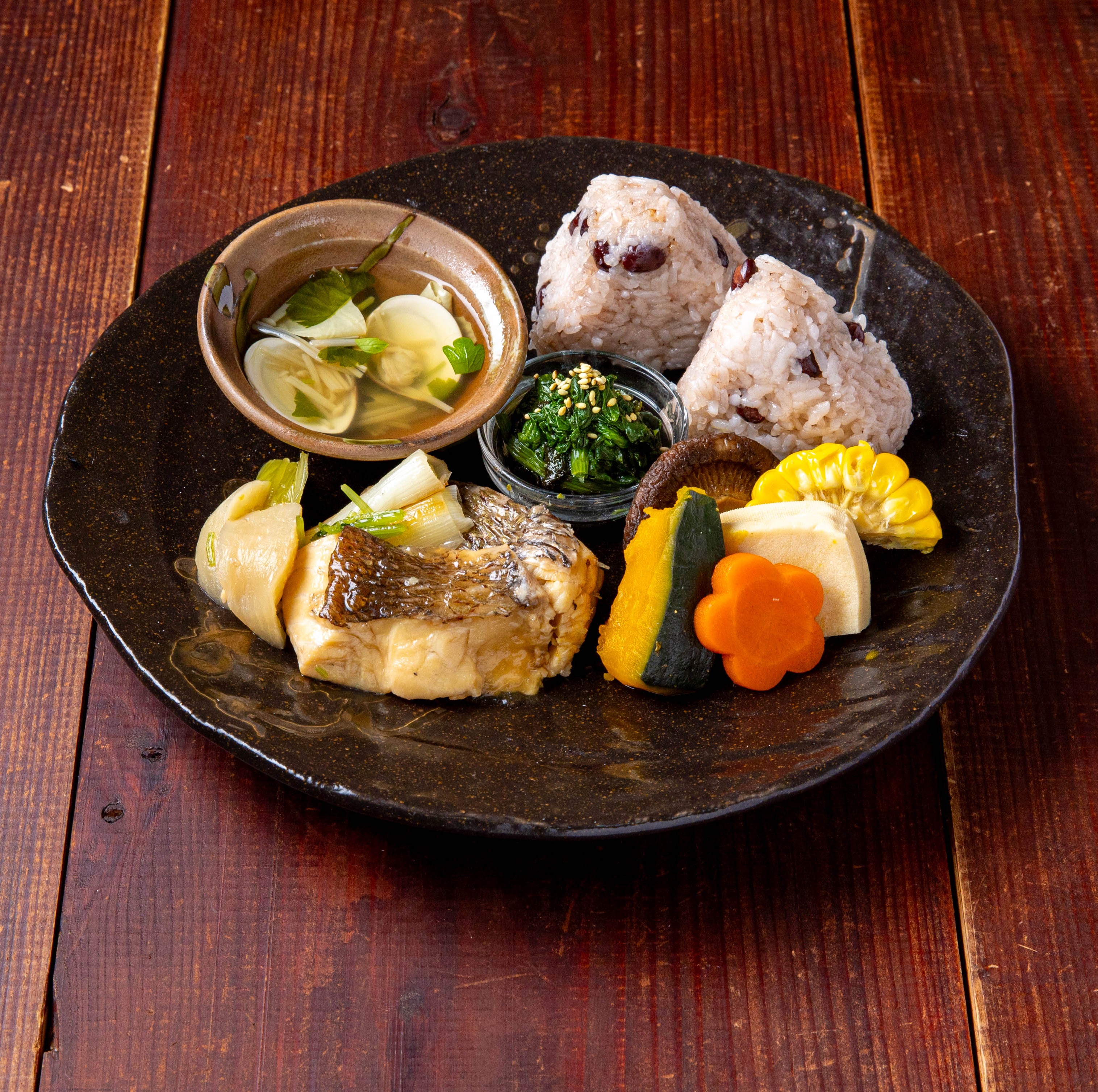 小豆ごはん 鯛かぶら 焚き合わせ ほうれん草の磯和え 湯葉のおすまし アレルギー:小麦、大豆 |